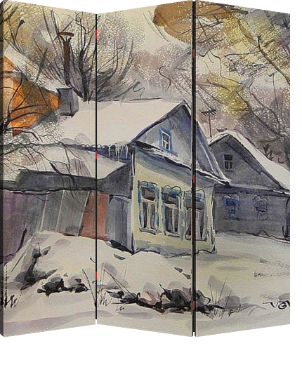 Описание ширмы Поет зима - аукает Поет зима - аукает, Мохнатый лес баюкает Стозвоном сосняка. Кругом с тоской глубокою Плывут в страну далекую Седые облака. А по двору метелица Ковром шелковым стелется, Но больно холодна. Воробышки игривые, Как детки