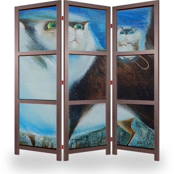 Описание ширмы Работа выполнена маслом на холсте. Будет интересна любителям современного искусства - стилей авангард, поп-арт. Прекрасно дополнит интерьер любого помещения от офиса до жилой комнаты. Станет отличным подарком.