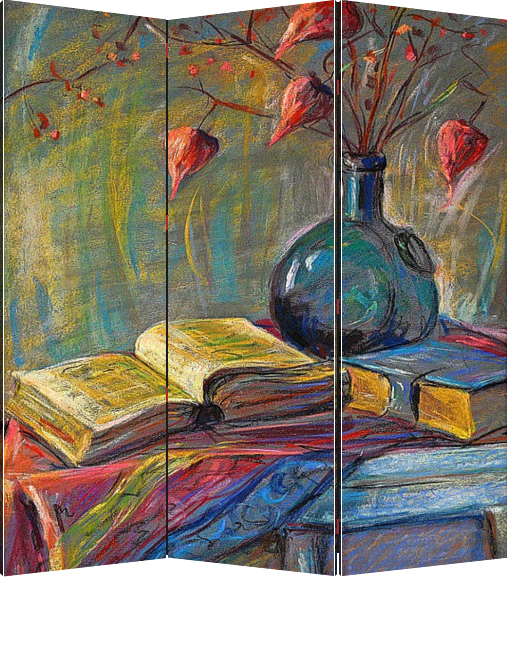 Ширма "Натюрморт книги и китайские фонарики"