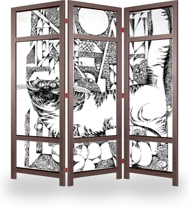 Описание ширмы Работа выполнена тушью на ватмане, будет интересна поклонникам современной живописи. Прекрасно дополнит любой интерьер от офиса до жилого помещения. Станет отличным подарком любителям картин написанных в стиле авангард, поп-арт.