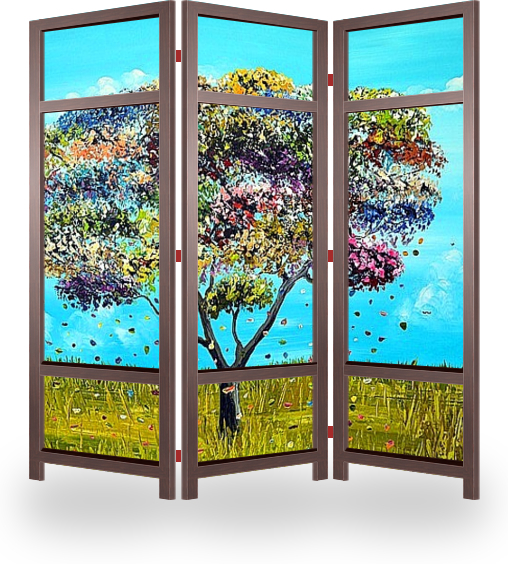 Описание ширмы Вся энергия, эмоции, воображение и мечты отражены в этой работе. Эта картина является окном в альтернативную реальность. картина написана акварелью на холсте.