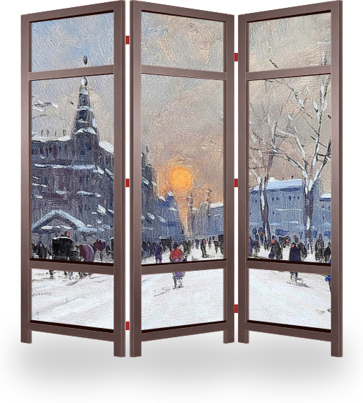 Ширма эконом отлично подойдет для временного размещения, рекламы, для отгораживания объектов интерьера и его дополнения. Лицевая сторона с изображением, обратная сторона открытый каркас