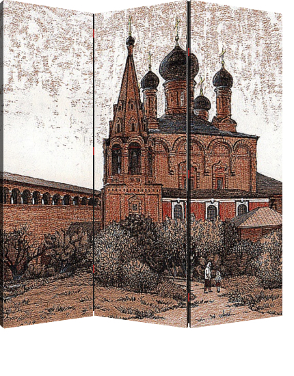 Описание ширмы Памятник архитектуры XVII века. Расположен в Таганском районе Москвы на пересечении Крутицкой улицы и 1-го Крутицкого переулка. Название подворья происходит от слова «Крутицы», обозначавшего в древности возвышенности на левом берегу реки Москвы.