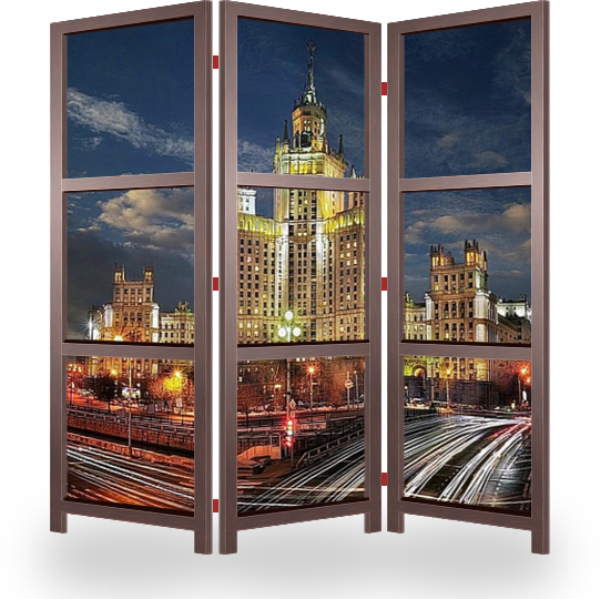 Ширма эконом отлично подойдет для временного размещения, рекламы, для отгораживания объектов интерьера и его дополнения. Лицевая сторона с изображением, обратная сторона открытый каркас