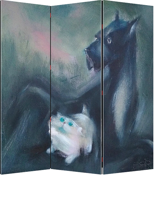 Описание ширмы Работа выполнена маслом на холсте, будет интересна поклонникам современной живописи. Прекрасно дополнит любой интерьер от офиса до жилого помещения. Станет отличным подарком любителям картин написанных в стиле авангард, поп-арт.