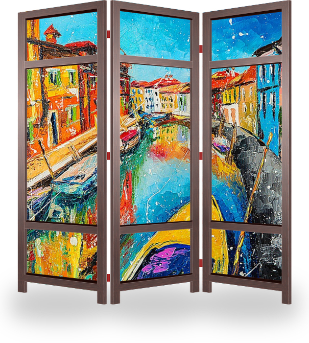 Описание ширмы Любовь Купцова - художник, работающий с различными материалами и техниками. Прежде всего это масло и акварель. Также занимается вышивкой, прижиганием по ткани, росписью стен.Самыми любимыми сюжетами являются животные, птицы, цветы и люди. Особое мес