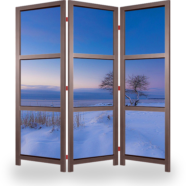 Описание ширмы Берег Финского залива. Зима в начале декабря. Перед самым рассветом. Привлекло внимание живописное, одинокое дерево.