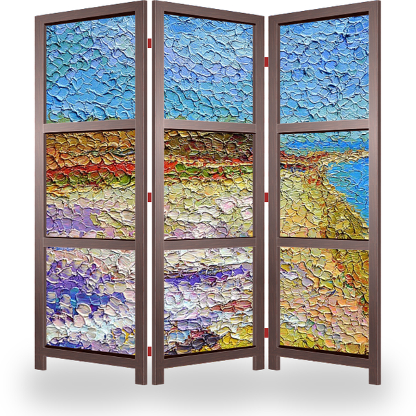 Описание ширмы Картина выполнена с натуры, Тамань, Таманский полуостров, пленэр Само озеро, покрыто белым налетом. С легким розовым оттенком. Этот цвет говорит о том, что озеро содержит йодистые компоненты. Озеро само не глубокое в летний период иногда высыхает пол