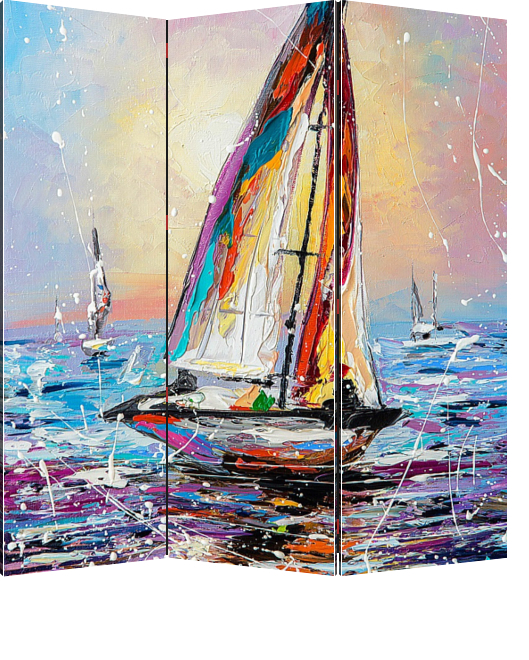 Описание ширмы Любовь Купцова - художник, работающий с различными материалами и техниками. Прежде всего это масло и акварель. Также занимается вышивкой, прижиганием по ткани, росписью стен.Самыми любимыми сюжетами являются животные, птицы, цветы и люди. Особое мес