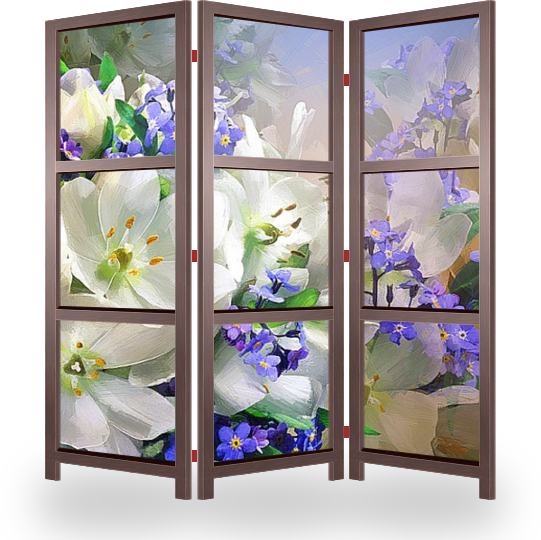Описание ширмы На картине изображены весенние цветы, они написаны крупными выразительными мазками. Изображение изыскано и великолепно по стилю и цветовой гамме.