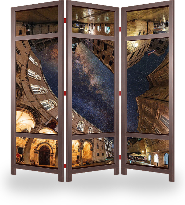 Ширма эконом отлично подойдет для временного размещения, рекламы, для отгораживания объектов интерьера и его дополнения. Лицевая сторона с изображением, обратная сторона открытый каркас