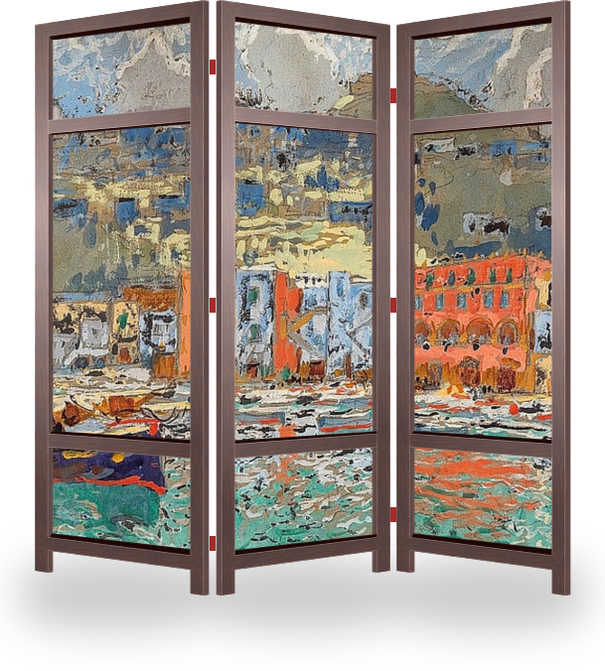 Ширма эконом отлично подойдет для временного размещения, рекламы, для отгораживания объектов интерьера и его дополнения. Лицевая сторона с изображением, обратная сторона открытый каркас