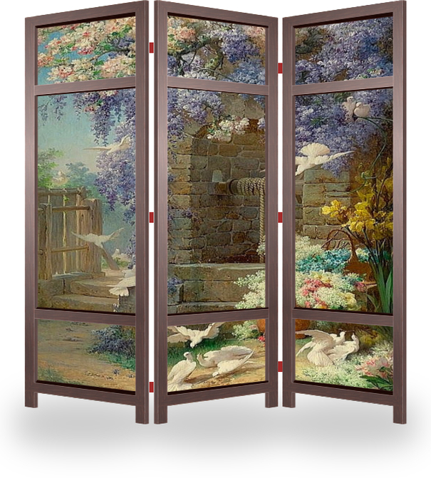 Ширма эконом отлично подойдет для временного размещения, рекламы, для отгораживания объектов интерьера и его дополнения. Лицевая сторона с изображением, обратная сторона открытый каркас