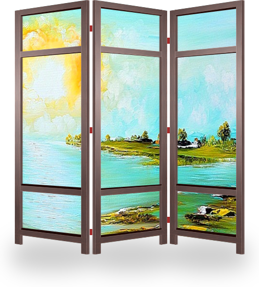 Ширма эконом отлично подойдет для временного размещения, рекламы, для отгораживания объектов интерьера и его дополнения. Лицевая сторона с изображением, обратная сторона открытый каркас