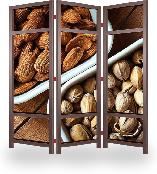 Описание ширмы два вида орехов на фактурном деревянном фоне. фуд фотография злаков. приятного просмотра