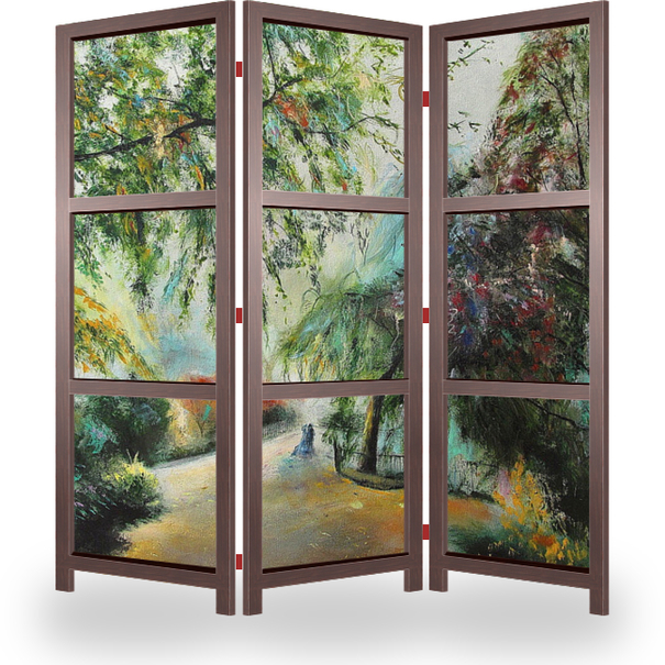 Описание ширмы Авторская картина "Ле-Шаруа" в технике холст/масло. Размер - 50х60 см. На картине изображен романтический с мужчиной и женщиной, гуляющих в лесу, наполненным светом и игрой красок. Картина излучает успокаивающую энергетику. При написании картины было