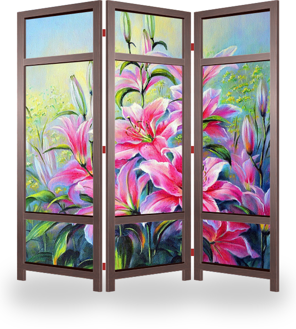 Описание ширмы Лилии - воплощение утонченной красоты. Изящные, благородные, благоухающие, они добавят ярких красок в Ваш интерьер. Картина написана маслом на холсте, ее размер 60х40.