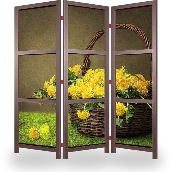 Описание ширмы постер в ярких, сочных тонах с веселыми одуванчиками создаст весеннее настроение на весь год