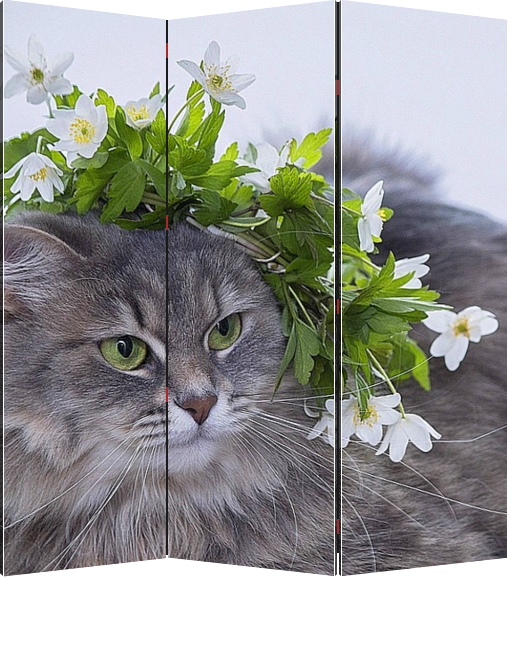 Описание ширмы постер с портретом красивой молодой сибирской кошки создаст уют в доме и атмосферу весны