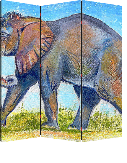 Описание ширмы Хойти-Тойти был слоном с мозгом профессора. Слоны известны своим именно разумом. Слонам и посвящается эта картина