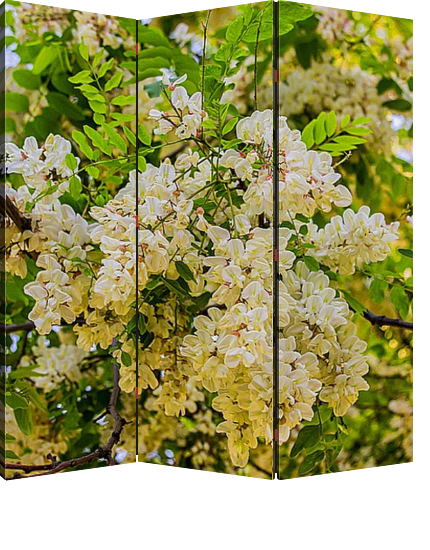 Описание ширмы Белая акация во дворе цвела, Ароматом сладким душу оплела, Окунула в детства позабытый сон, Успокоил нежно все тревоги он. Утону в медовых переливах сна, Чтоб накрыла белой тишиной она, Белая акация - белый снегопад, Лепестков упавших белый ар