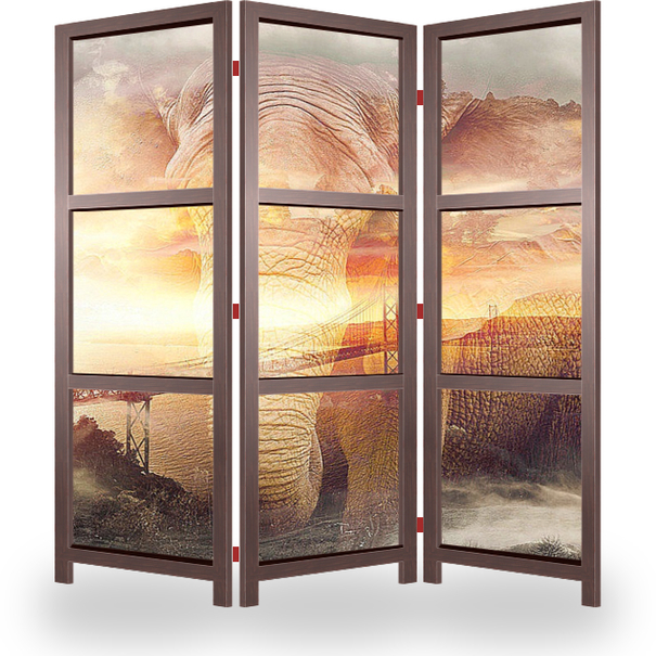 Описание ширмы Постер с изображением рассвета над мостом "Золотые ворота" в Сан-Франциско на фоне деревьев густого леса и силуэта слона в стиле лофт украсит и дополнит Ваш интерьер. Прекрасно подойдет для спальни и гостиной.