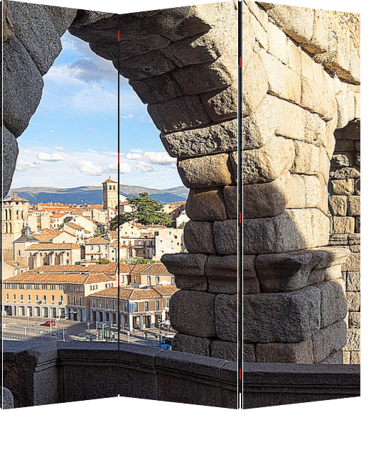 Описание ширмы После римлян в Европе осталось множество акведуков, а самый длинный из них находится в Сеговии. Длина акведука, сложенного из гранитных блоков, составляет 818 метров...