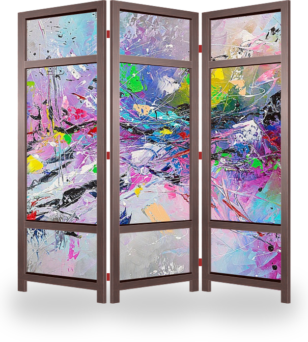Описание ширмы Любовь Купцова - художник, работающий с различными материалами и техниками. Прежде всего это масло и акварель. Также занимается вышивкой, прижиганием по ткани, росписью стен.Самыми любимыми сюжетами являются животные, птицы, цветы и люди. Особое мес