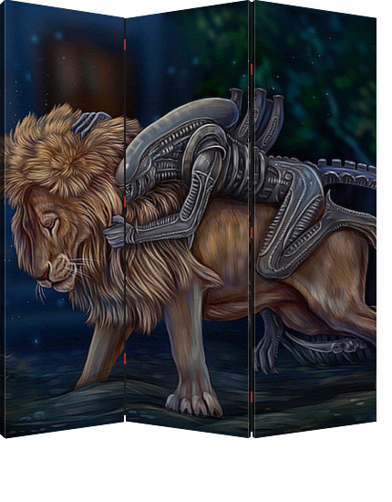 Описание ширмы «Чужой» (англ. Alien) — научно-фантастический фильм ужасов режиссёра Ридли Скотта. Название отсылает к главному антагонисту фильма — Чужому, чрезвычайно агрессивному инопланетному существу, которое выслеживает и убивает экипаж космического корабля. П