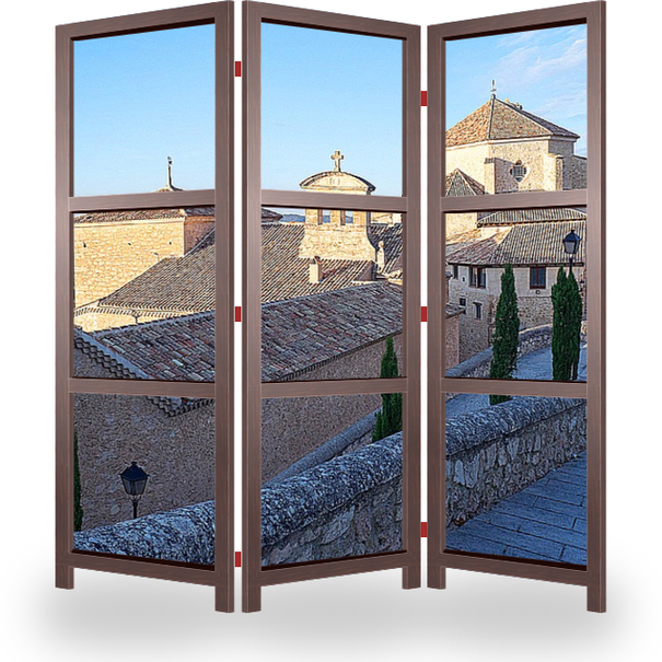 Описание ширмы Куэнка – старинный испанский город, стоящий на скале, окруженной глубокими ущельями. Куэнка запоминается висячими над пропастью домами, живописными улочками и великолепным кафедральным собором.