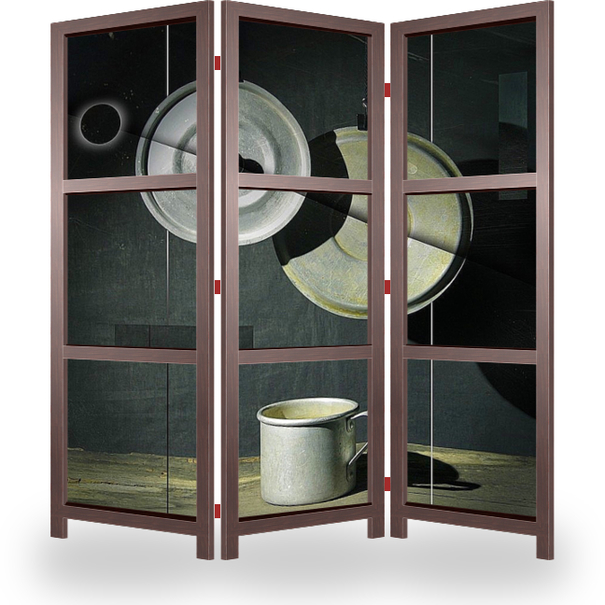 Описание ширмы Идя фото возникла спонтанно, когда во время съемки другого сюжета на глаза попались старые крышки от кастрюль. А тень от одной из них навеяла название натюрморта.