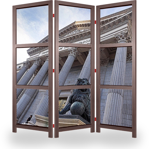 Ширма эконом отлично подойдет для временного размещения, рекламы, для отгораживания объектов интерьера и его дополнения. Лицевая сторона с изображением, обратная сторона открытый каркас