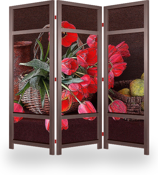Описание ширмы Натюрморт с красными тюльпанами и зелёными яблоками. Обработка под графический рисунок. Такой постер может украсить любое помещение вашего дома, квартиры, отеля,