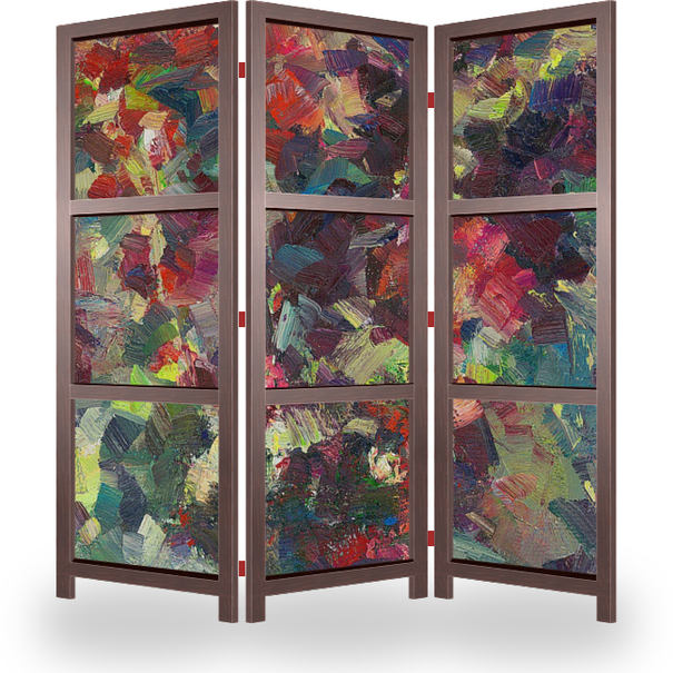 Описание ширмы этюд Мальвы на ветру выполнен в абстрактно-реалистической манере. импрессия движения и цвета создают на холсте красивую мозаику пятен, ассоциируемых с летней свежестью.