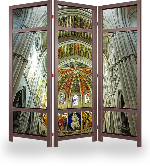 Ширма эконом отлично подойдет для временного размещения, рекламы, для отгораживания объектов интерьера и его дополнения. Лицевая сторона с изображением, обратная сторона открытый каркас