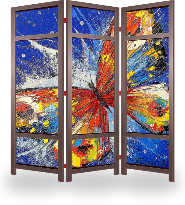 Ширма эконом отлично подойдет для временного размещения, рекламы, для отгораживания объектов интерьера и его дополнения. Лицевая сторона с изображением, обратная сторона открытый каркас