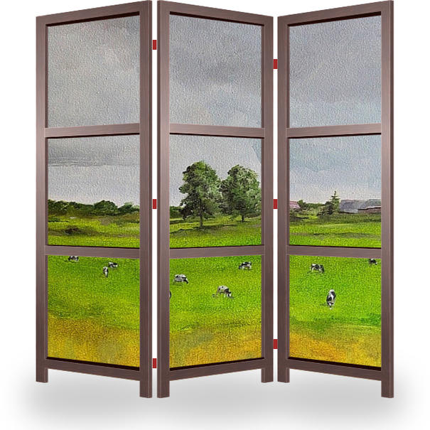 Описание ширмы пейзаж, луг, деревня, картина, масляная живопись, холст, масло, корова, животные..................................................................................................................