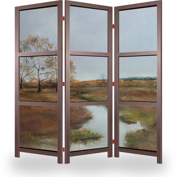Описание ширмы пейзаж, река, деревня, луг, живопись, масляная живопись, картина, осень, масло, холст.........................................................................................................................