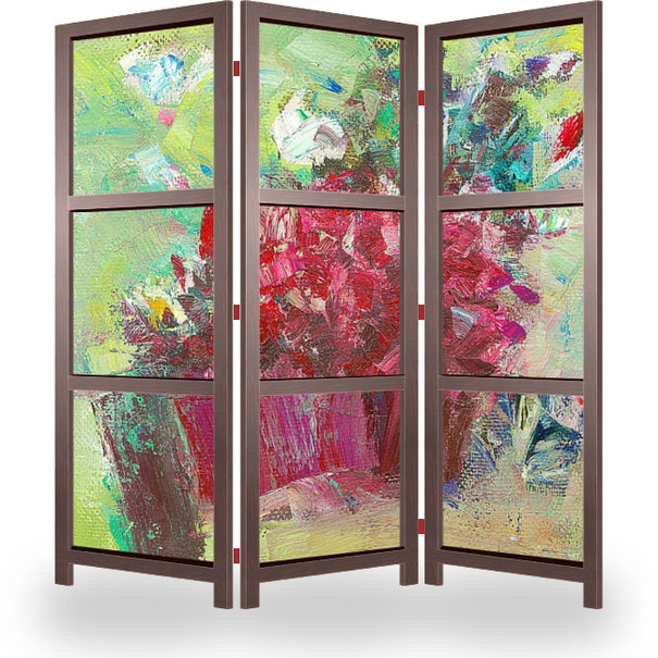 Описание ширмы серия быстрых живописных этюдов на выявление цветовых отношений, динамичные мазки кистью передают трепетность и красоту природных объектов.