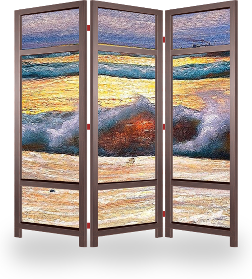 Ширма эконом отлично подойдет для временного размещения, рекламы, для отгораживания объектов интерьера и его дополнения. Лицевая сторона с изображением, обратная сторона открытый каркас