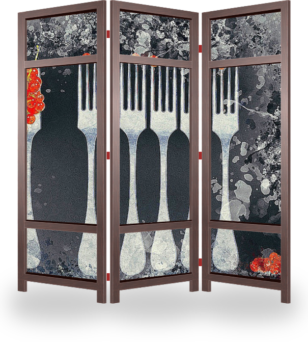 Описание ширмы Искусство под рукой. Эксперименты с различными техниками, текстурами, материалами и предметами. Лучшее сочетание, для современного интерьера.