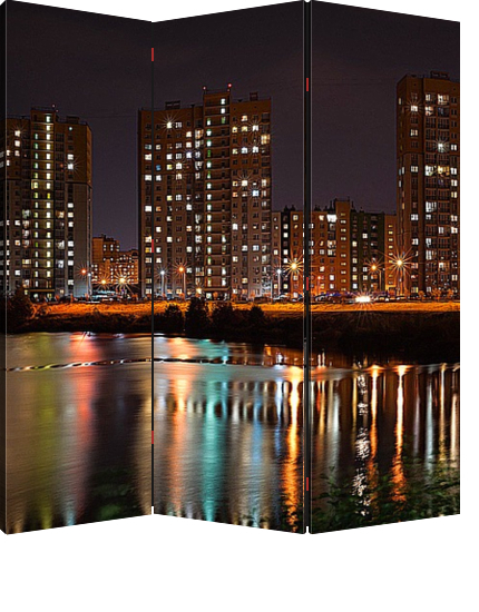 Описание ширмы Городской пейзаж одного из районов Нижнего Новгорода. Вечерняя прогулка по осеннему городу, где много огней и красивых мест.
