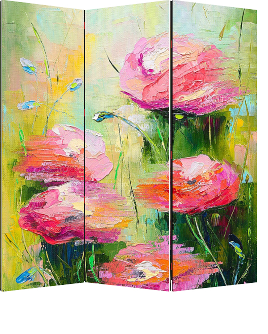 Описание ширмы Любовь Купцова - художник, работающий с различными материалами и техниками. Прежде всего это масло и акварель. Также занимается вышивкой, прижиганием по ткани, росписью стен.Самыми любимыми сюжетами являются животные, птицы, цветы и люди. Особое мес