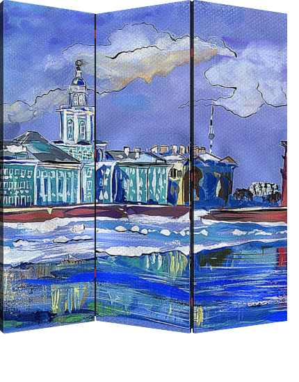 Описание ширмы Лед тронулся! воздух легкий и свежий..Нева сбрасывает оковы льда и чувсвуется начало новой жизни, новой эры, и свет вокруг, воздух- голубые.