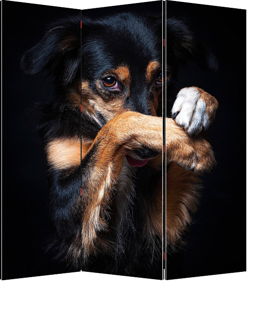 Описание ширмы Бордер-колли - порода собак. Выведена в Великобритании. Относится к пастушьим собакам. Согласно исследованиям, проведённым учёными из Университета Британской Колумбии под руководством Стенли Корена (англ.), бордер-колли является самой умной собакой с