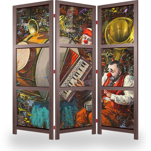 Описание ширмы Обожаю клоунов, с многими дружу. Это волшебные люди! Цирк - это особая страна, свой мир, и я знаю этот мир, этих людей, без которых будет гораздо скучнее жить! Клоуны - не только цирк, это своя философия. И это своя, неповторимая музыка, которая нико