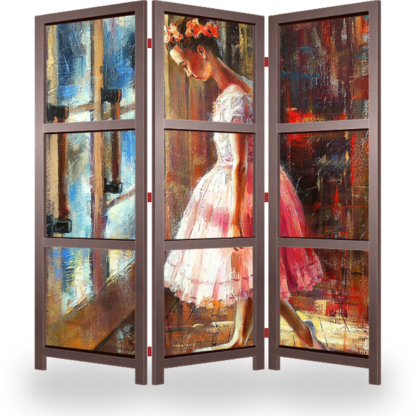 Описание ширмы Балет. Серия картин создавалась и создается художником на основании десятков зарисовок за кулисами оперного театра и детской хореографической школы.