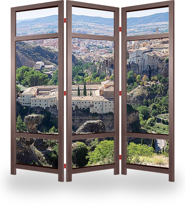 Описание ширмы Куэнка – старинный испанский город, стоящий на скале, окруженной глубокими ущельями. Куэнка запоминается висячими над пропастью домами, живописными улочками и великолепным кафедральным собором.