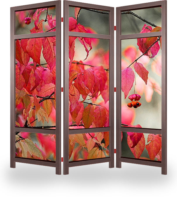 Описание ширмы Нежно-розовые цвета осеннего бересклета украсят ваш дом, добавят тонкости вашим чувствам, напомнит вам моменты общения с природой, перенесет в мир красок и цветов, свежести, первозданной радости бытия...