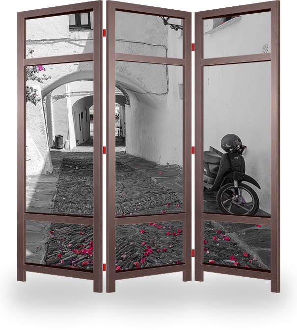 Ширма эконом отлично подойдет для временного размещения, рекламы, для отгораживания объектов интерьера и его дополнения. Лицевая сторона с изображением, обратная сторона открытый каркас